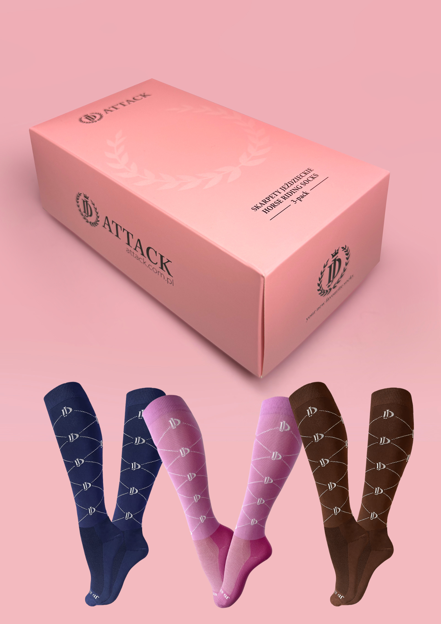 Zestaw 3 par skarpet jeździeckich Brenda w modnych kolorach